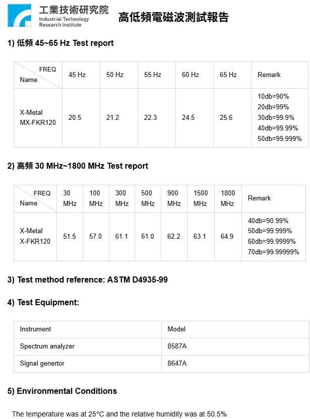 | 8. Magnetic field shielding@1.8GHz | 65dB |